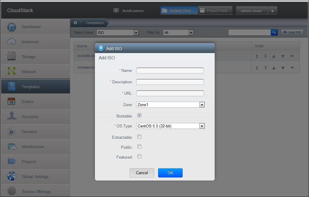 OS Type: The type of the OS that the ISO has. You can choose other if the OS is not listed in the list. This helps CloudStack to perform certain operations as well as improves the performance of the guests.