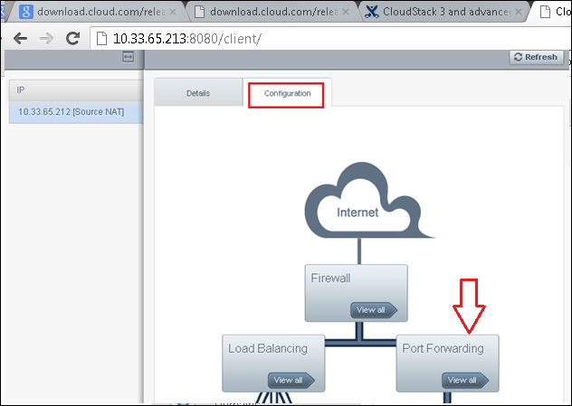 Network tab provides us options to view, add, and manage the guest networks present in CloudStack. The users can acquire IP addresses, set up the load balancers, and create port forwarding rules.