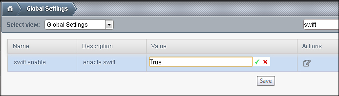Global settings: The configuration of various parameters. This lists the various parameters that define the settings and configuration in cloud.