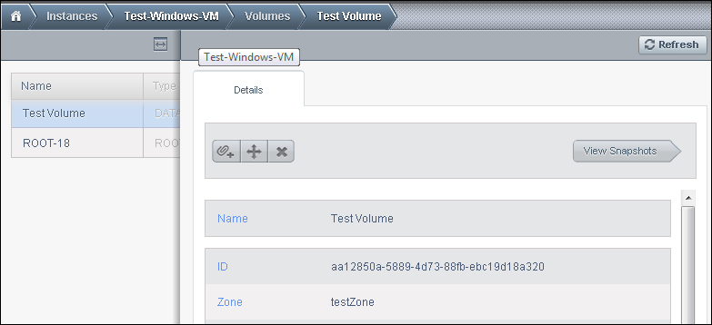 Storage tab allows the administrators to create, view, and manage volumes and snapshots. These volumes are provided by the storage configured in CloudStack set up. The various details of volumes are also provided on the page. In the project view the volumes available in the project selected are displayed as well the users who can create, view, and manage storage volumes and snapshots.
