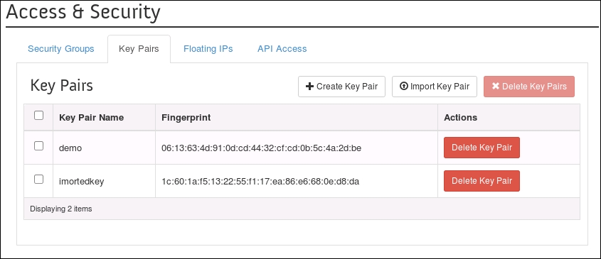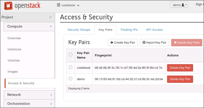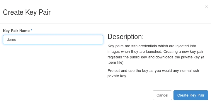 Using OpenStack Dashboard for key management