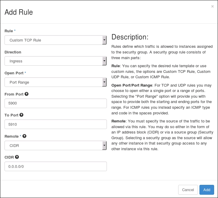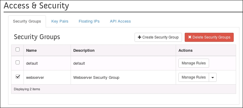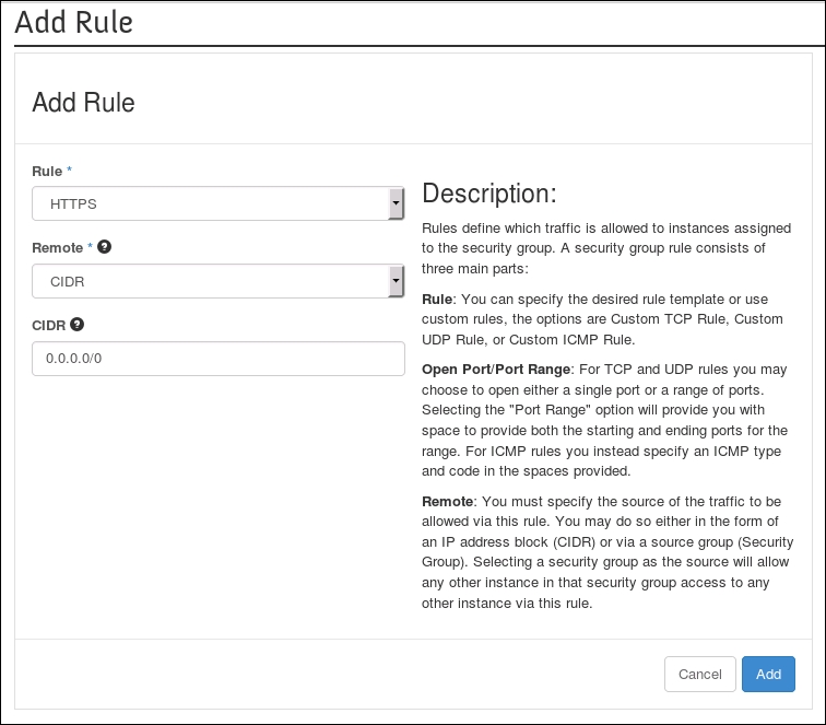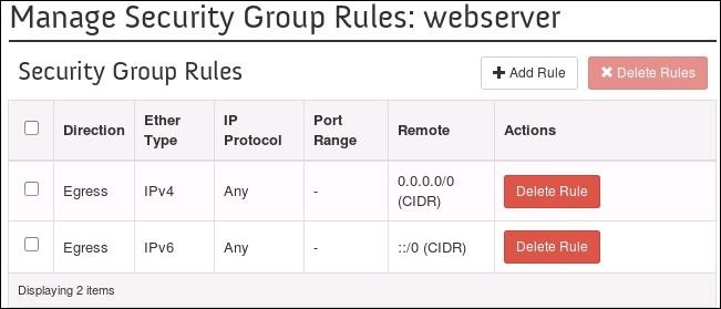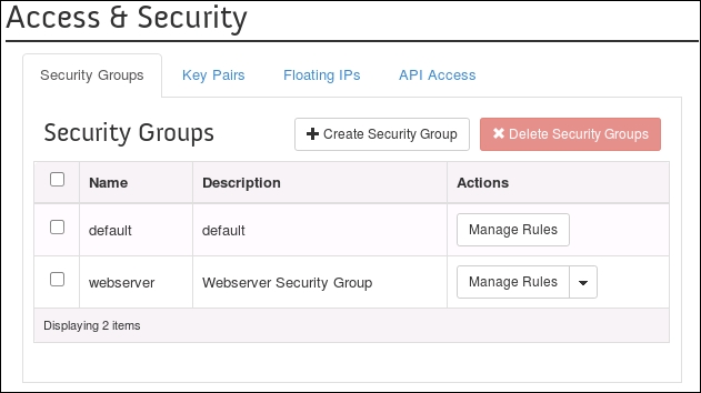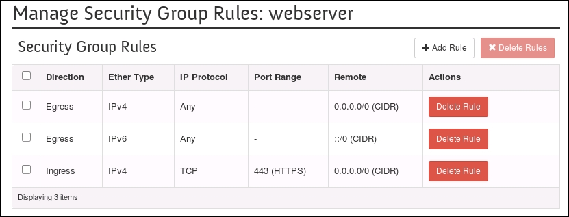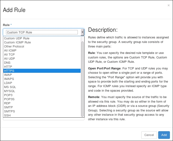Using OpenStack Dashboard for security group management