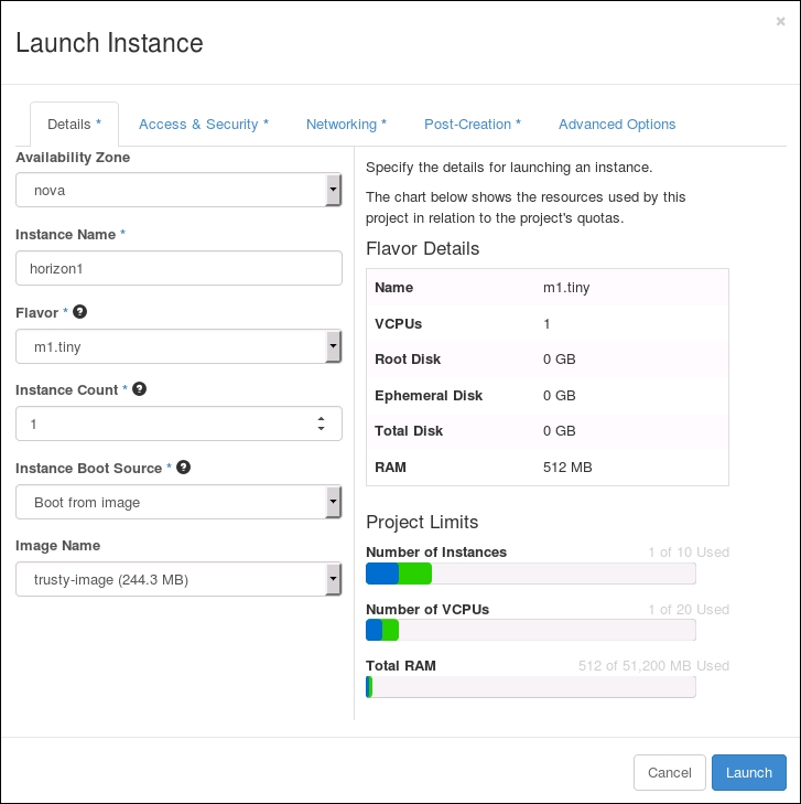 Using OpenStack Dashboard to launch instances