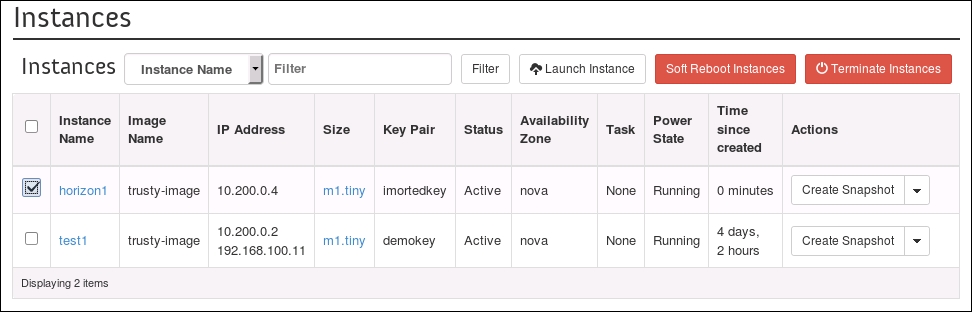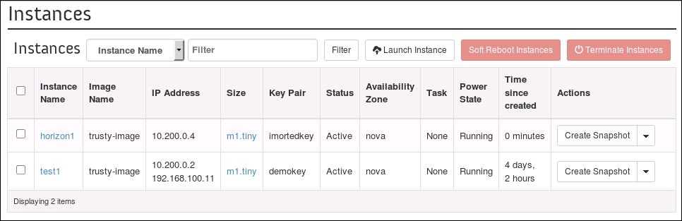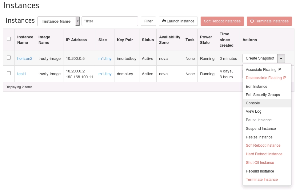 Using OpenStack Dashboard to terminate instances