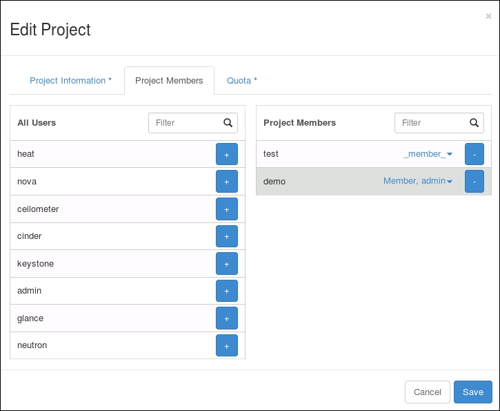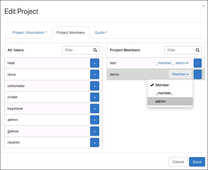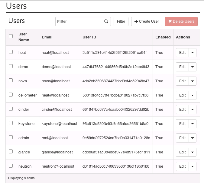 Using OpenStack Dashboard for user management