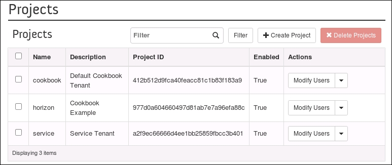 Using OpenStack Dashboard to add new tenants projects