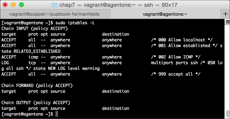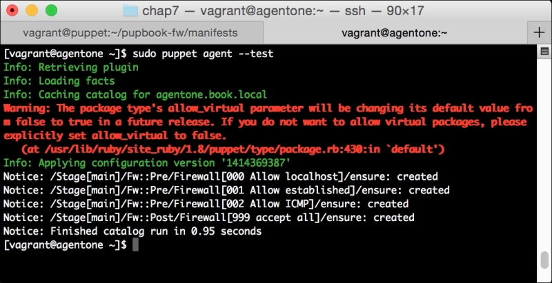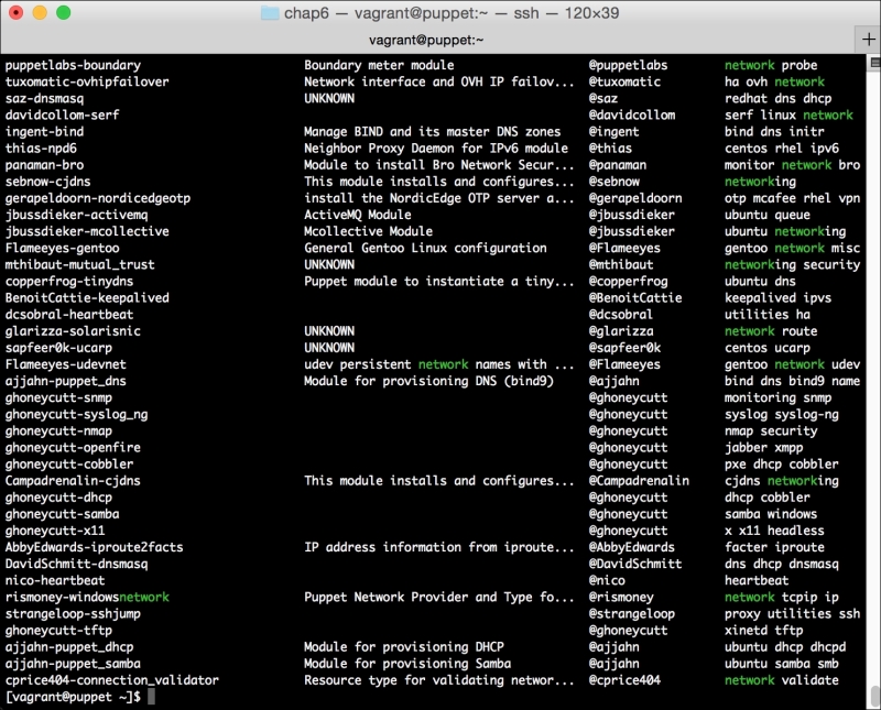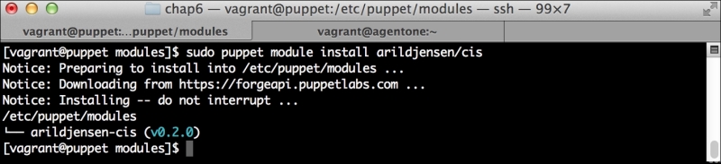 This will install the PuppetDB module, as well as several prerequisites we will need to run it. These include modules to manage PostgreSQL, and a number of utility modules. It'll also bring in a module to manage the local firewall. We'll use the same module in Chapter 7, Network Security and Puppet.
