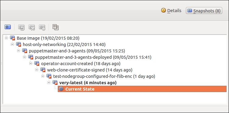 Nagios server: It imports resources from PuppetDB. This host is called puppet-agent-nagios in the VirtualBox Manager.