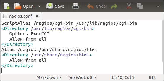 File resources (on lines 2 to 9) create the so-called symbolic links that are needed when purging Nagios resources with Puppet. We will cover Nagios resource purging in detail later in this chapter, but here is some background on why these symbolic links are needed.