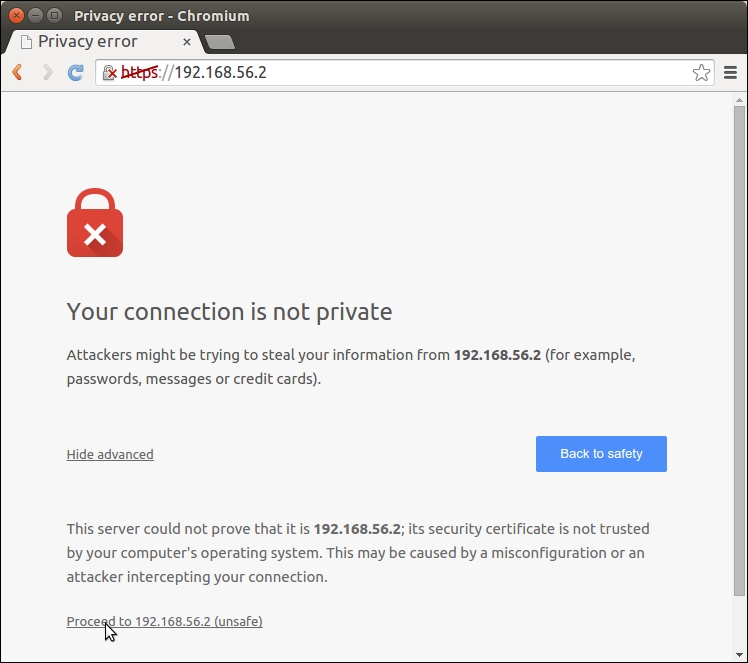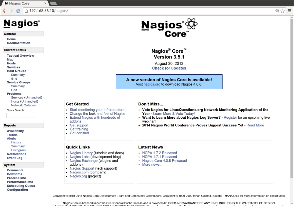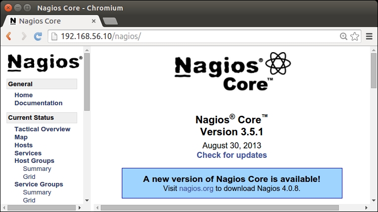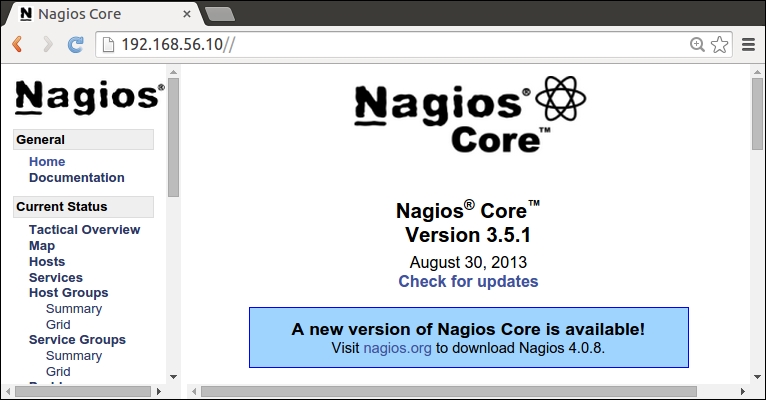 Since Chapter 5, Load Balancing the Cluster, I've been bouncing all the virtual machines a number of times, and VirtualBox has allocated different IP addresses to virtual machines. At this moment, my web server has an IP address 192.168.56.11, and the nagios server's IP address is 192.168.56.12. I guess in your environment, virtual machines have a different set of IP addresses.
