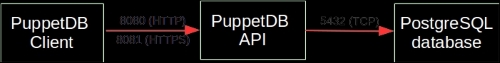 The connectivity from the PuppetDB Client to the PostgreSQL database via PuppetDB API can be illustrated with the following diagram: