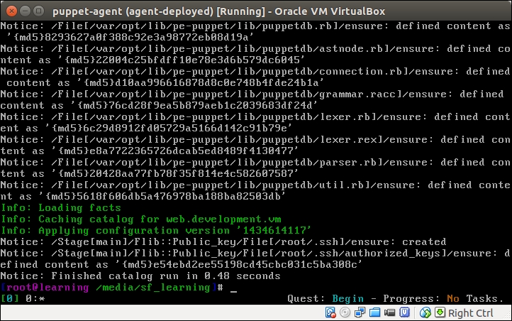 When the Puppet run completes successfully, you will see the following events displayed on the screen: