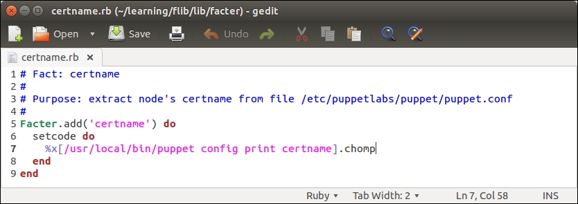 Lines 3 and 4 set the host_name and address attribute values based on facter ipaddress_eth1.