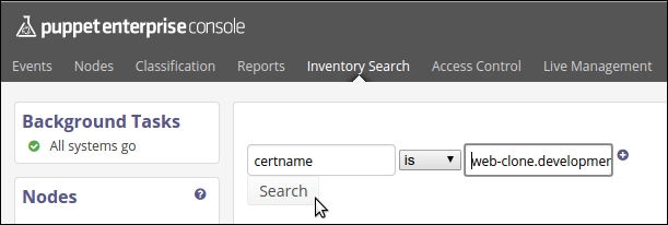 Or if we want to know what certnames belong to Puppet agents in our environment, we can make a query that returns a list of certnames that belong to an environment called development.