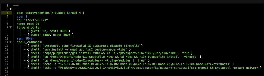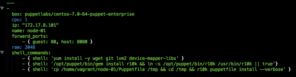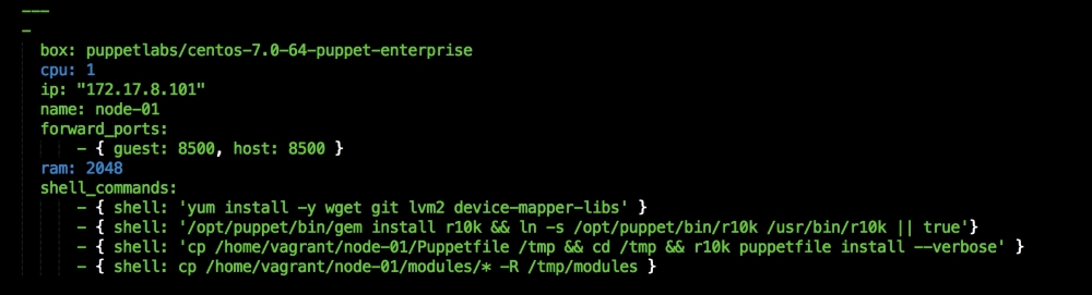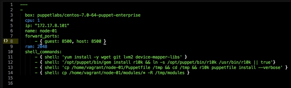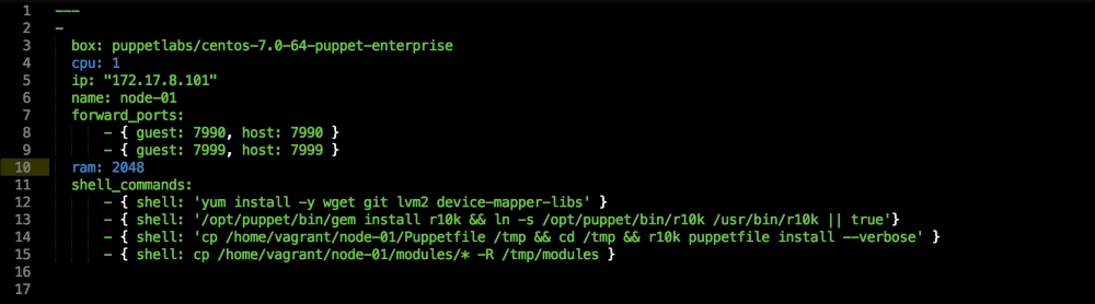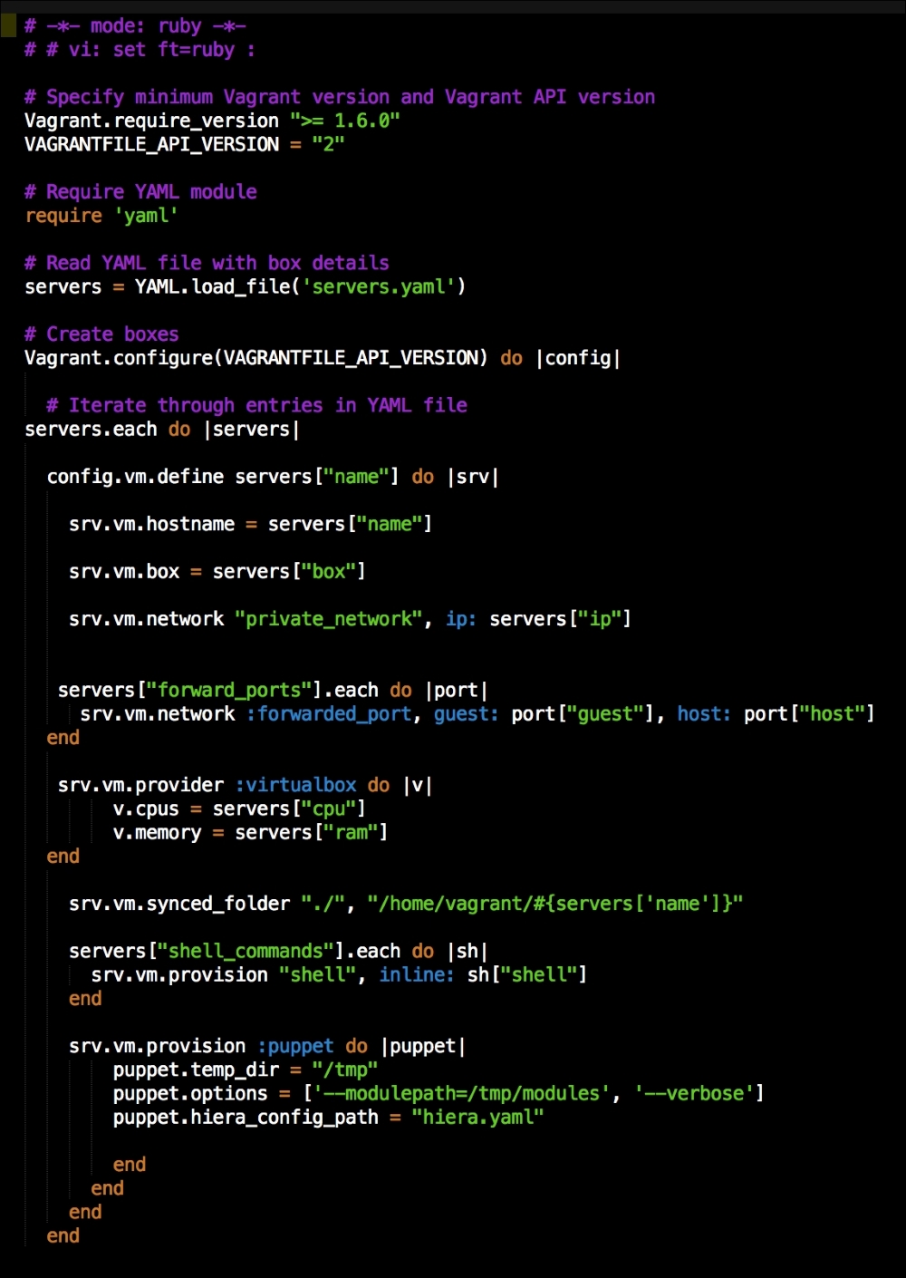 Once we have created our Vagrant repo, let's open our servers.yaml file, as follows: