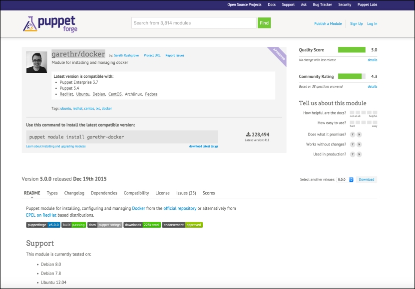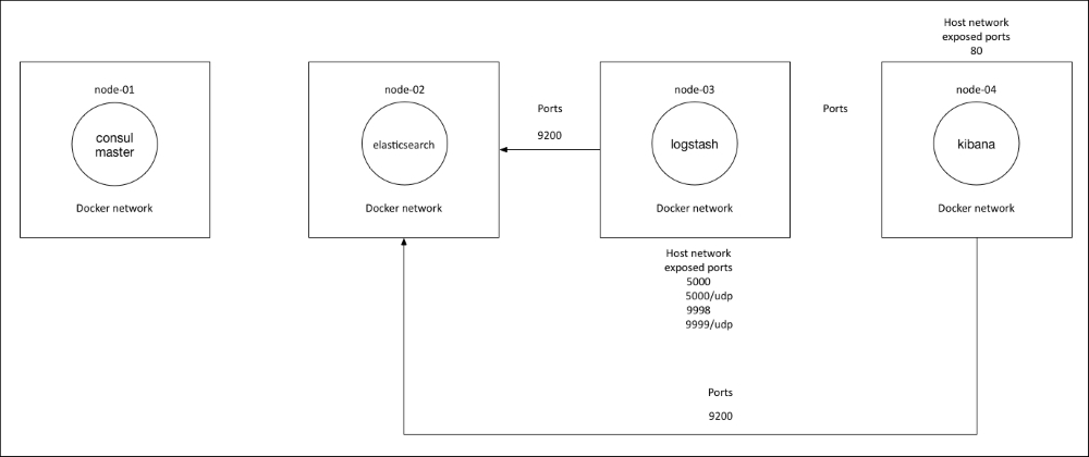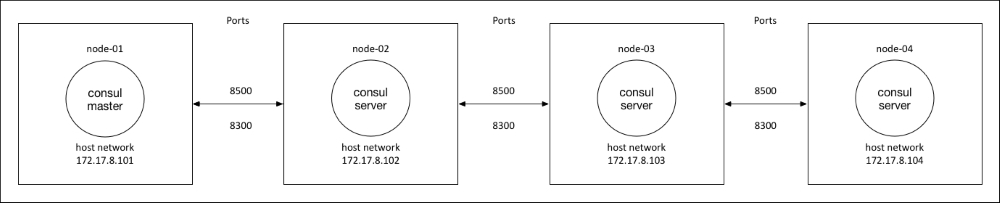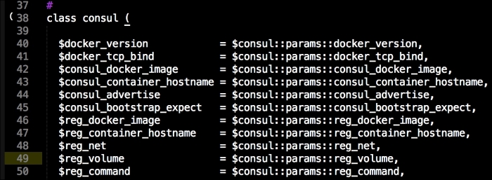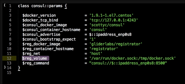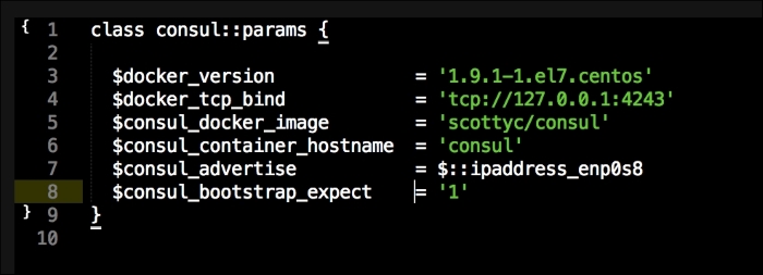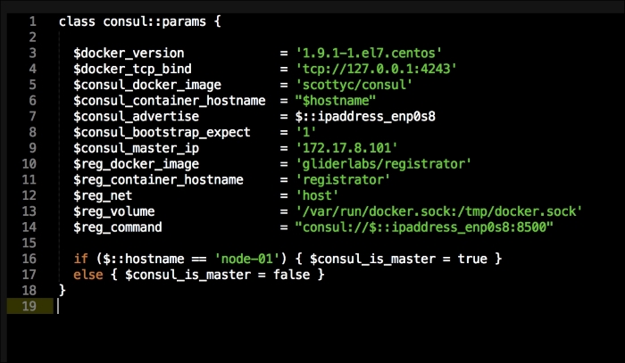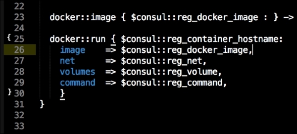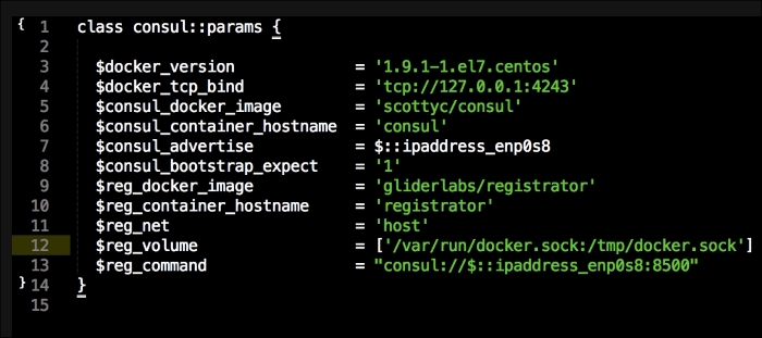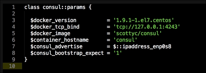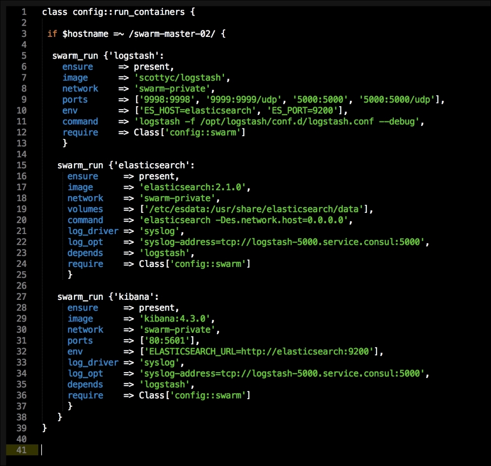 As you can see, we have defined three more containers. This is the first time we will define a Kubernetes pod (http://kubernetes.io/docs/user-guide/pods/). A pod is a group of containers that creates an application. It is similar to what we have done with Docker Compose. As you can see, we have changed all the IP addresses to the <%= @master_ip %> parameter. We will create four new files: apps.pp, config.pp, install.pp, and params.pp.