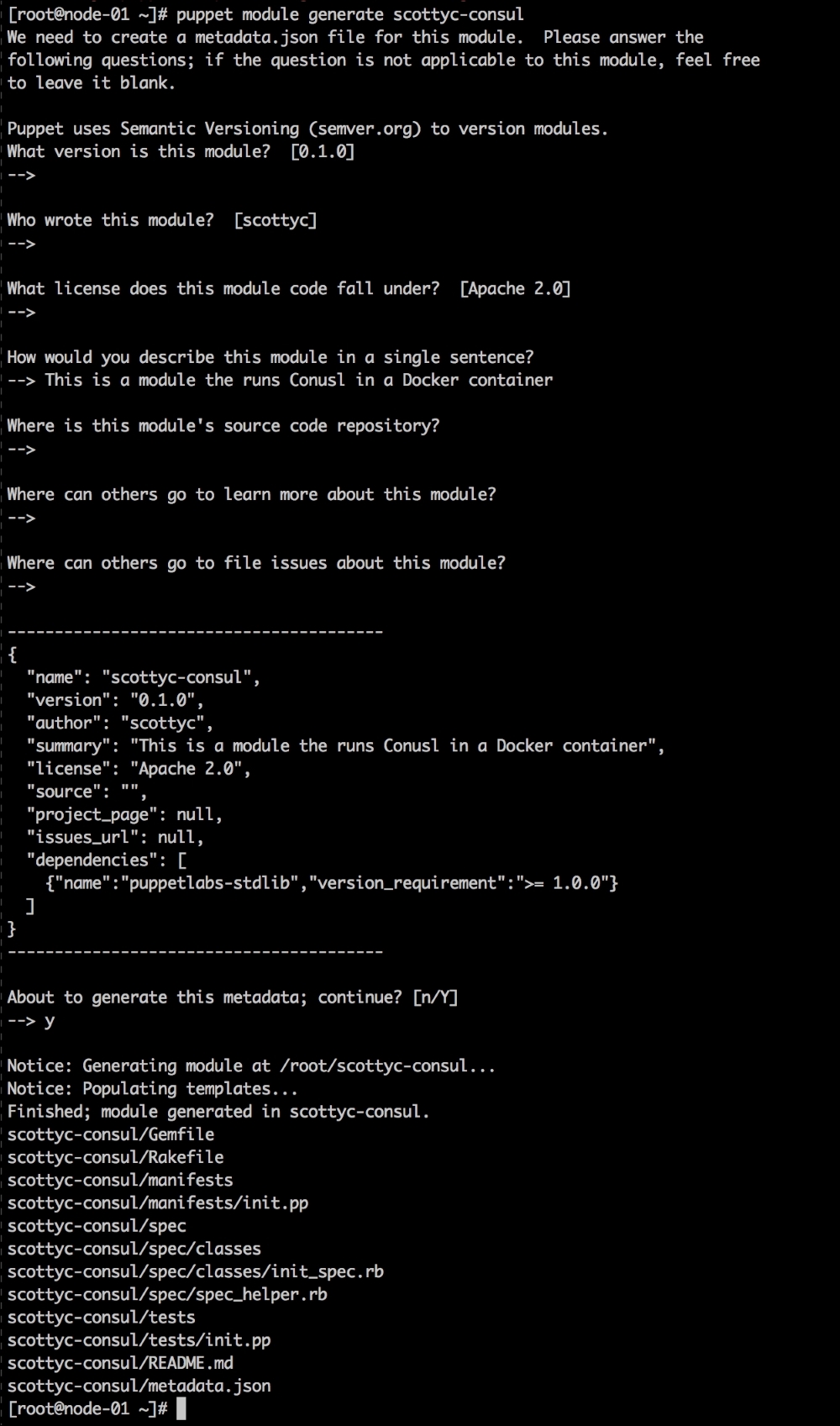 That is all the plumbing that we need to set up for our repo. Let's create a new module called <AUTHOR>-kubernetes_docker. Once it is created, we will move our module to the modules directory in the root of our Vagrant repo.