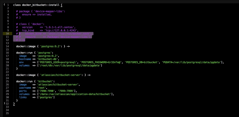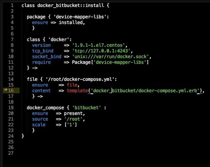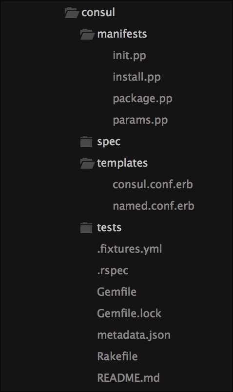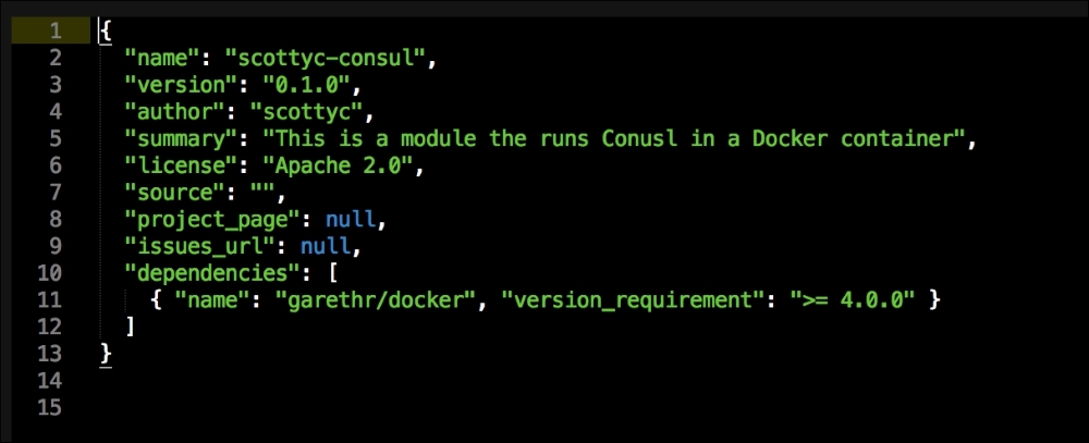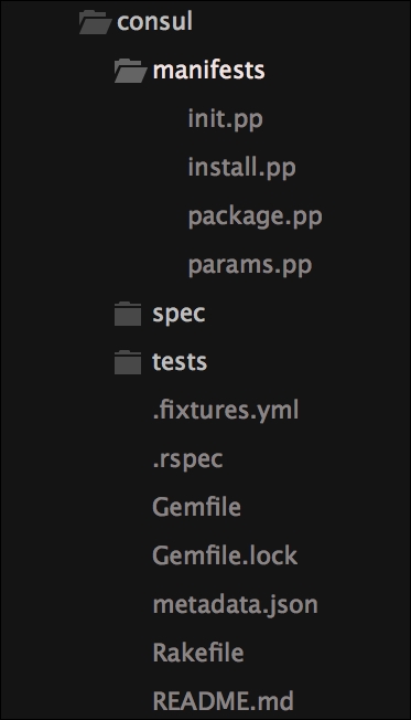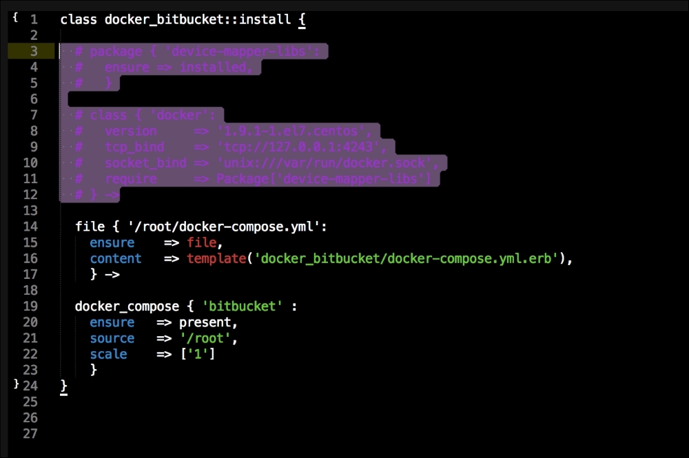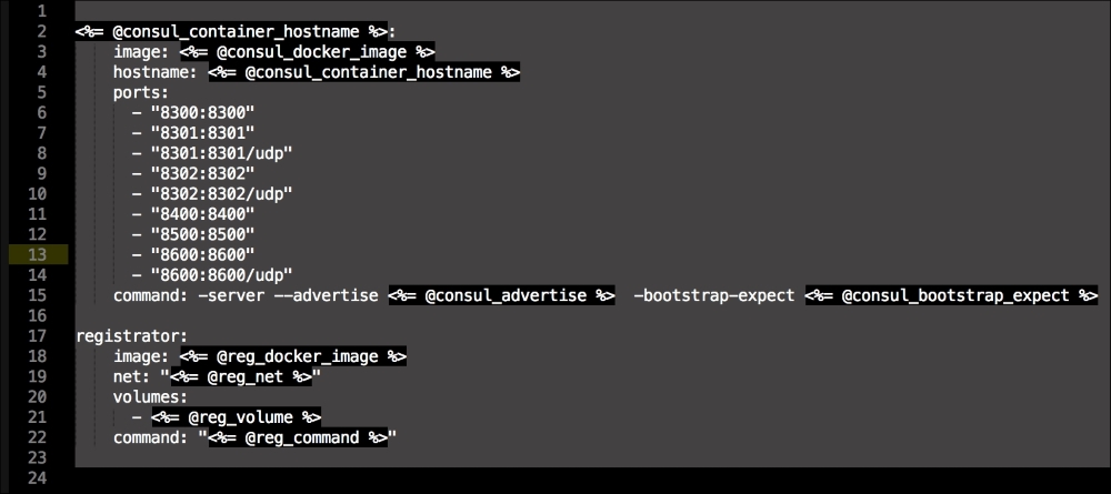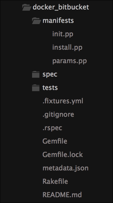 We are going to create two new folders in our module. The first will be the templates folder, and the other folder will be the lib directory. We will get to the lib directory toward the end of our coding. The first file we will create and edit is docker-compose.yml.erb. The reason for this is that it is the foundation of our module. We will add the following code to it:
