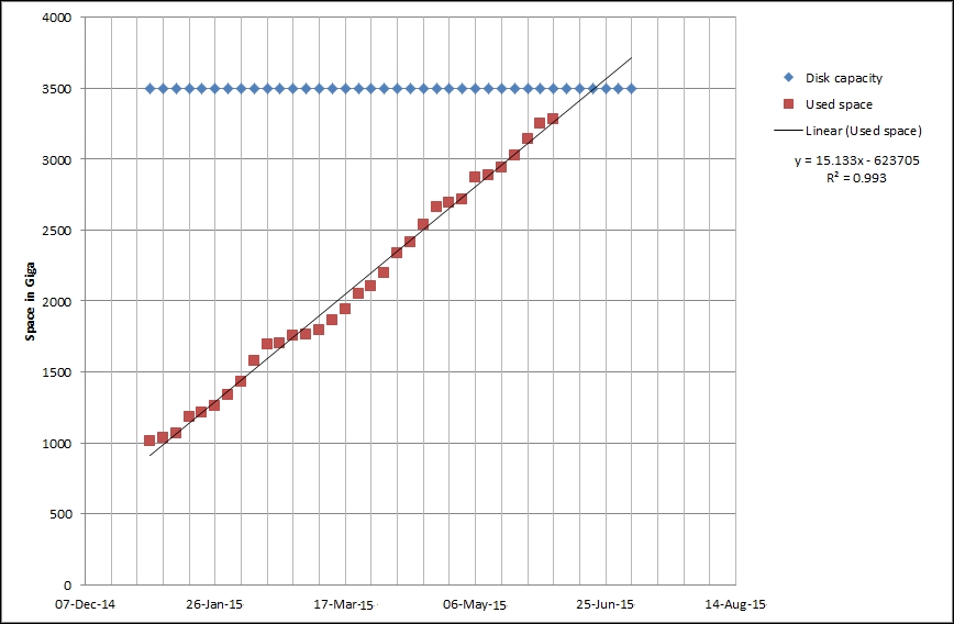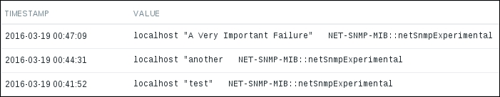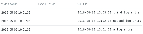 Ouch. While we can clearly see the effect our change had, it has also left us with very ugly historical data. The Y axis of that graph represents the total counter value (thus showing the total since the monitored system was started up), but the X axis represents the correct (delta) data. You can also take a look at the values numerically—go to the dropdown in the upper-right portion, which currently reads Graph. Choose 500 latest values from there. You'll get the following screen: