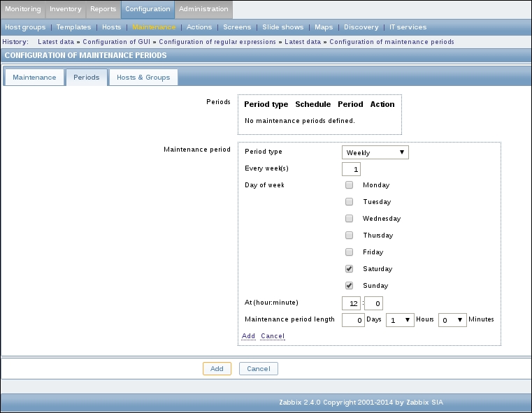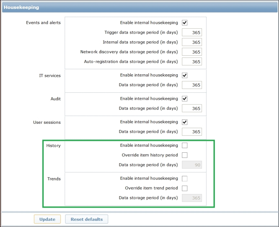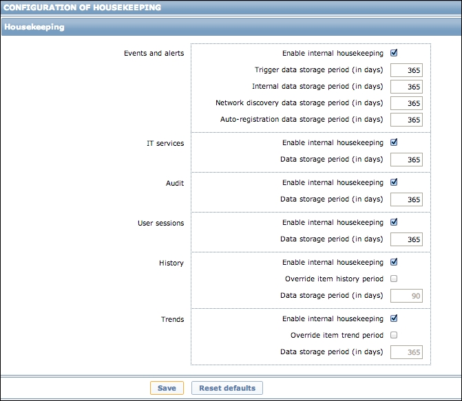 Refer Chapter 22, Zabbix Maintenance, for details on how to tune these intervals.