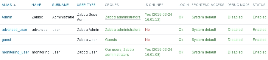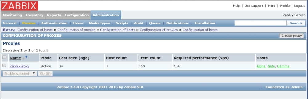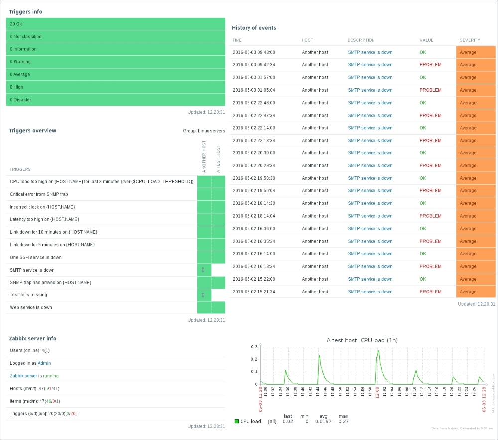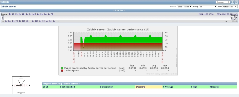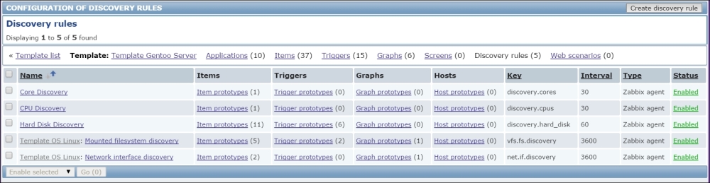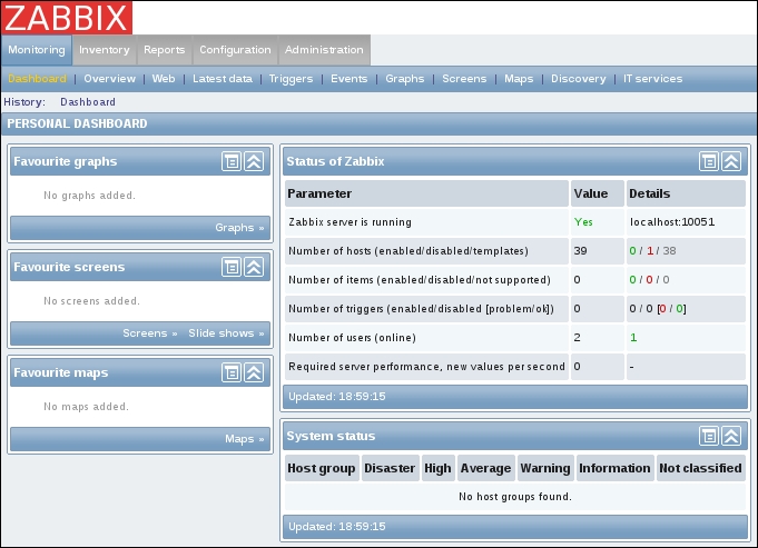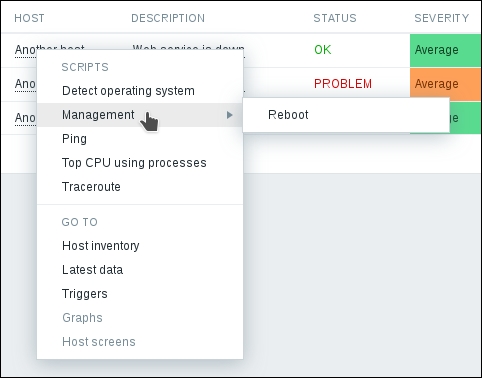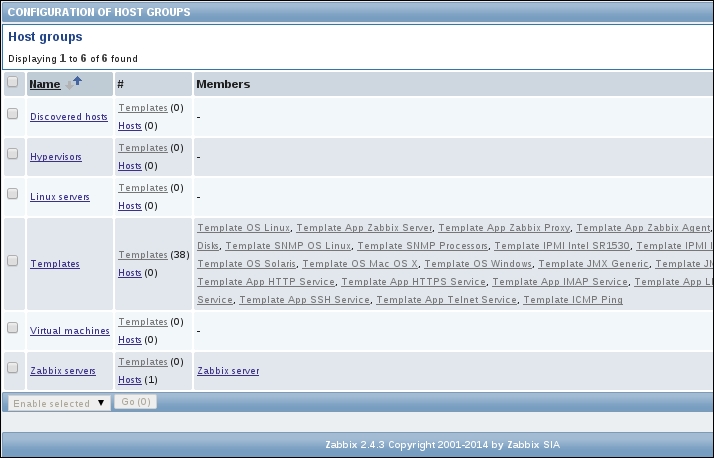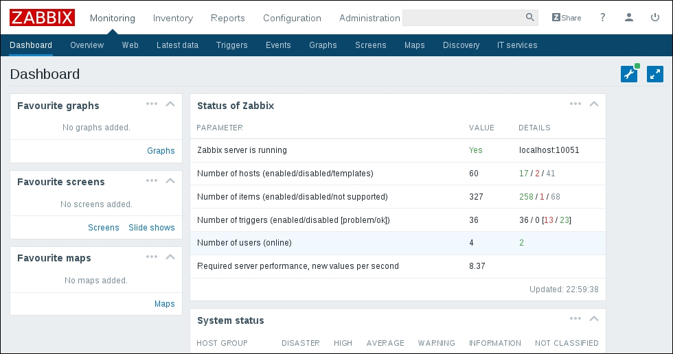The three additional entries represent the SNMP, JMX, and IPMI data-gathering statuses. We will monitor SNMP devices in Chapter 4, Monitoring SNMP Devices, IPMI devices in Chapter 16, Monitoring IPMI Devices, and JMX applications in Chapter 17, Monitoring Java Applications.