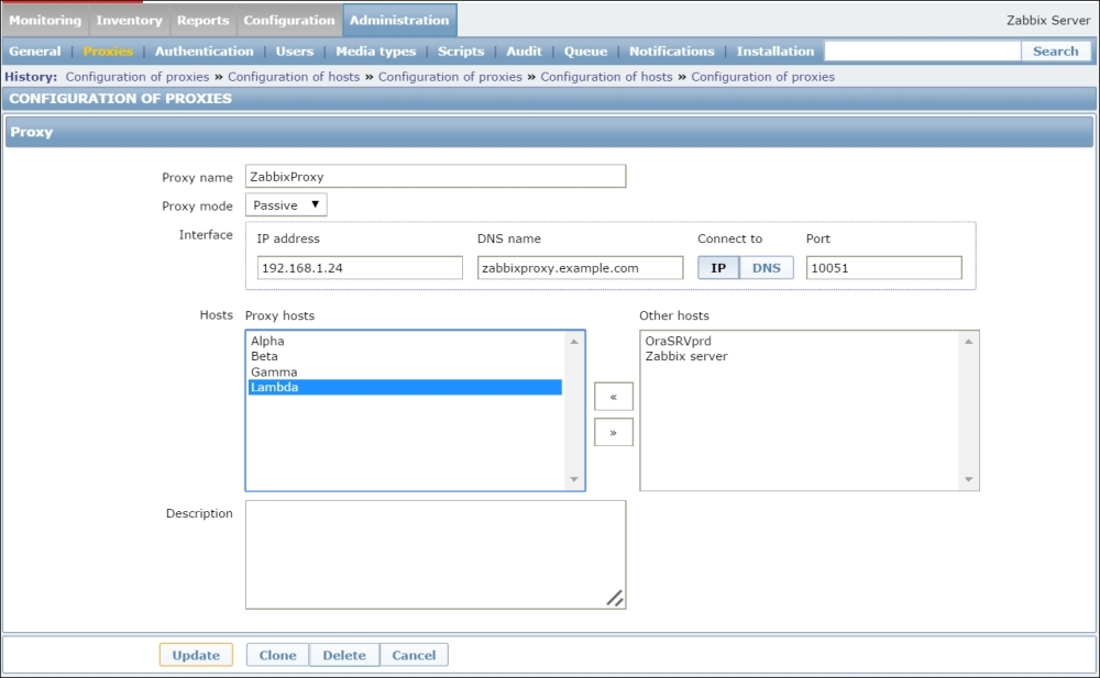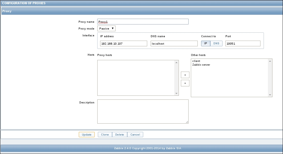 This parameter tells the agent where it should connect to for active items. In our case, the localhost will not work as the Zabbix server is on a remote machine, so we should modify this. Replace 127.0.0.1 with the IP address or DNS name of the Zabbix server, and then restart the agent either using an init script or the manual method killall.