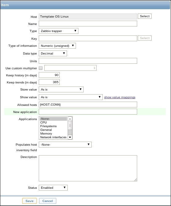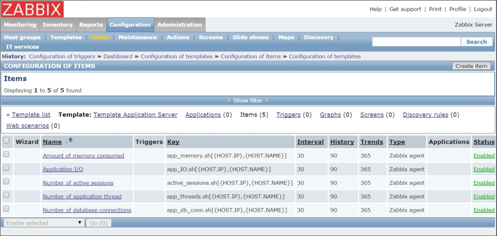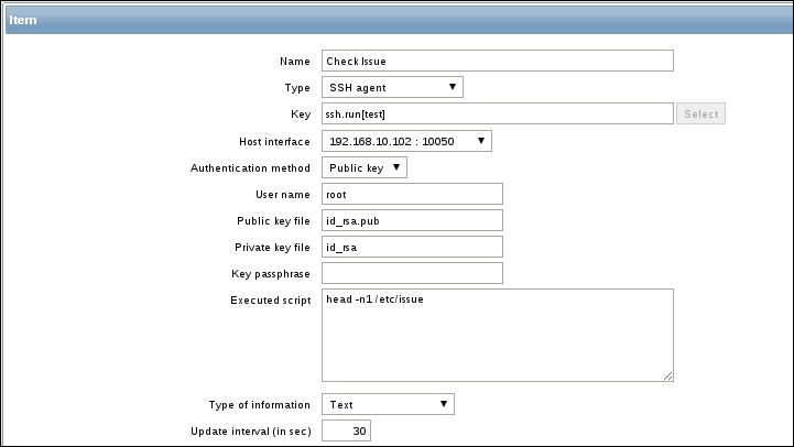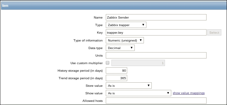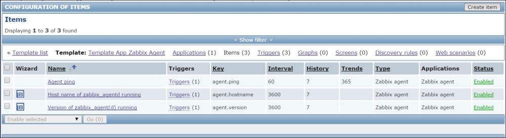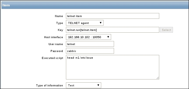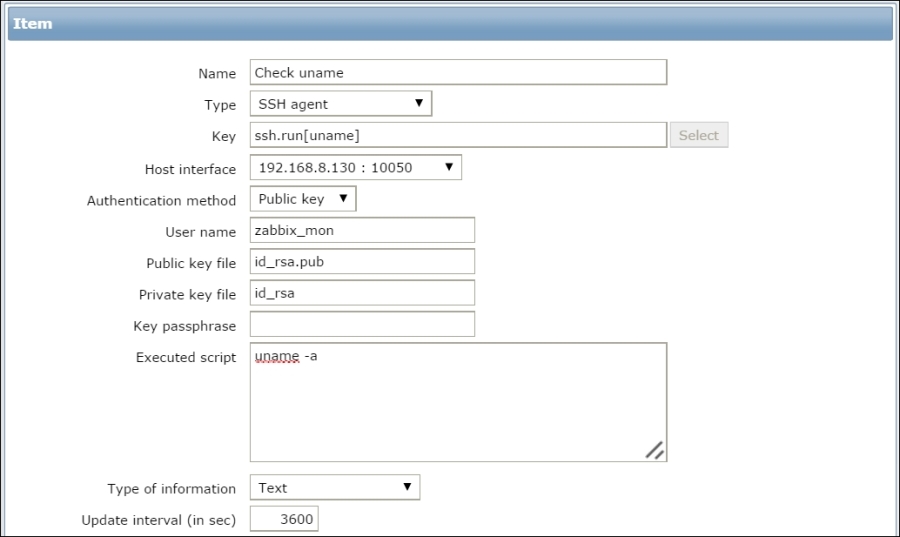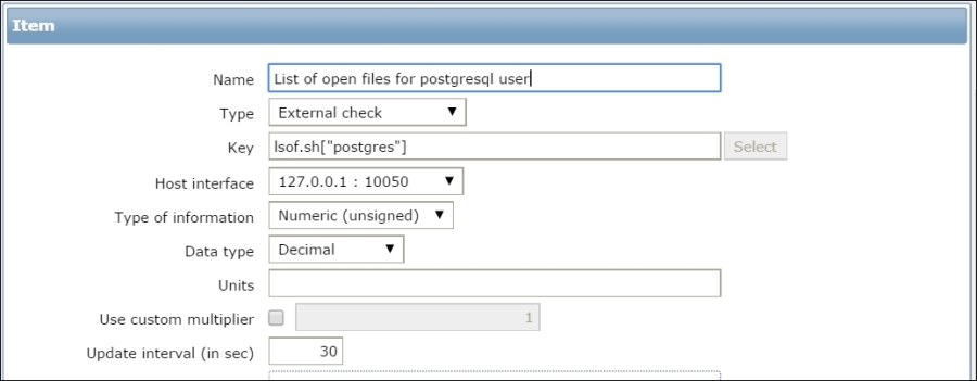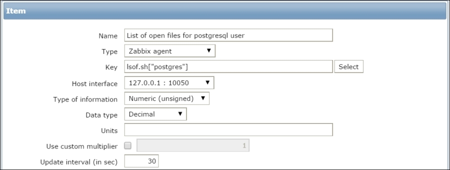 The item we created before was a so-called passive item, which means that the Zabbix server initiates a connection to the agent every time a value has to be collected. In most locations, they are simply referred to as being of the Zabbix agent type.