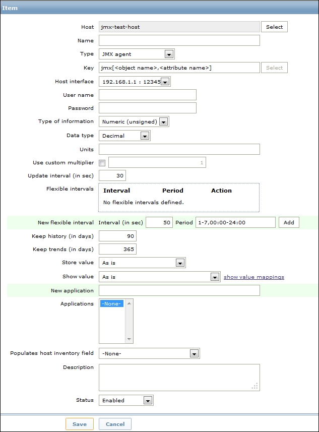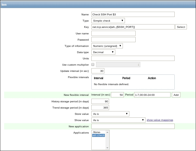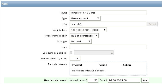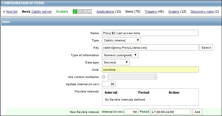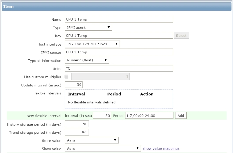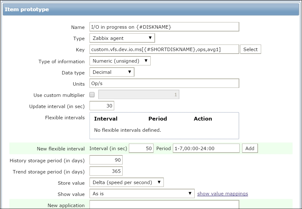 This means that with the default interval of 30 seconds, it may take from 30 to 90 seconds before the first value arrives for the item. If the item has a very long interval, such as a serial number or agent version configured earlier, it may take a very long time until the first value appears automatically. There is no way to speed up item polling except by adding it with a short interval at first and then increasing the interval when the item has been verified to work as expected.