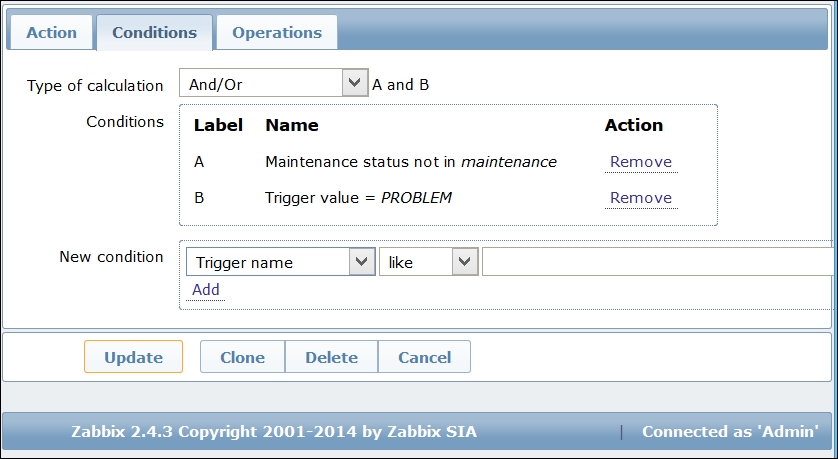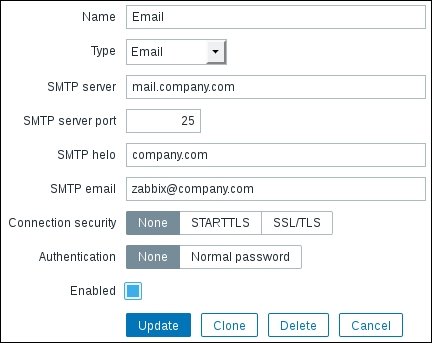Notice how one of the previously seen buttons is different. What was labeled Add previously is Update now. This change identifies the operation that we are going to perform: either adding a new entity or updating an existing one. One might open a configuration form intending to clone the entity, scan the fields, change some values, but forget to click on the Clone button. In the end, the existing item will be changed. The difference in the labels of the Add and Update buttons might help spot such mistakes before they are made.