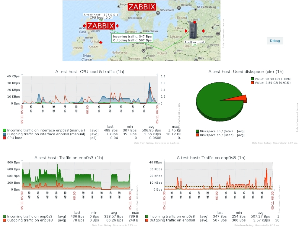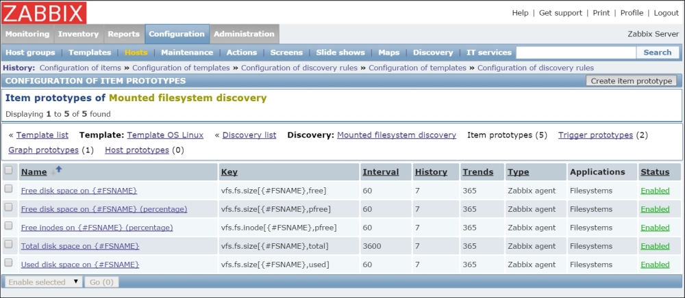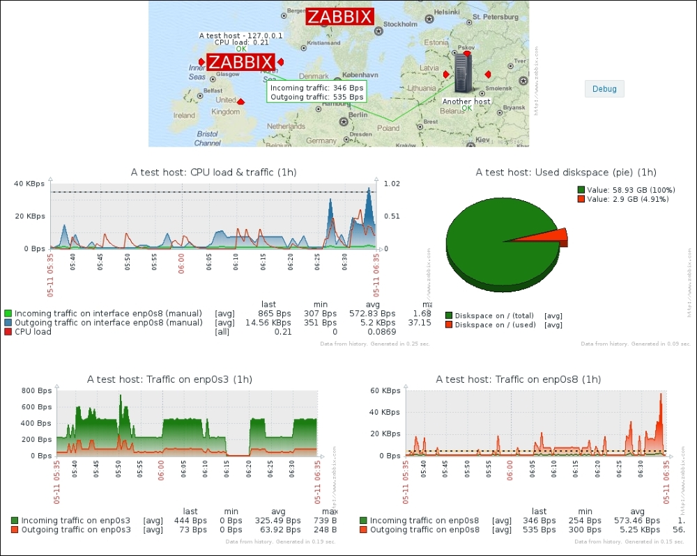 Notice how the system in this screenshot actually has an interface named enp0s8, not eth0. We will find out how to allow Zabbix to worry about interface names and discover them automatically in Chapter 12, Automating Configuration.