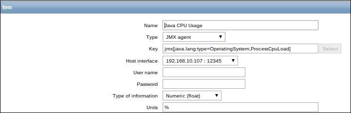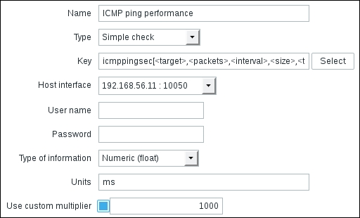 Go to Configuration | Hosts, click on Items next to Another host, and click on Create item. For now, use these values: