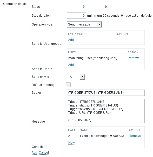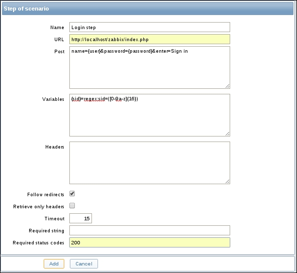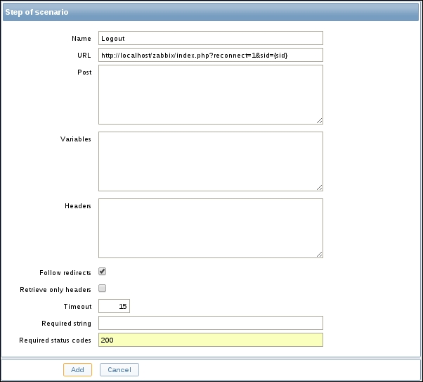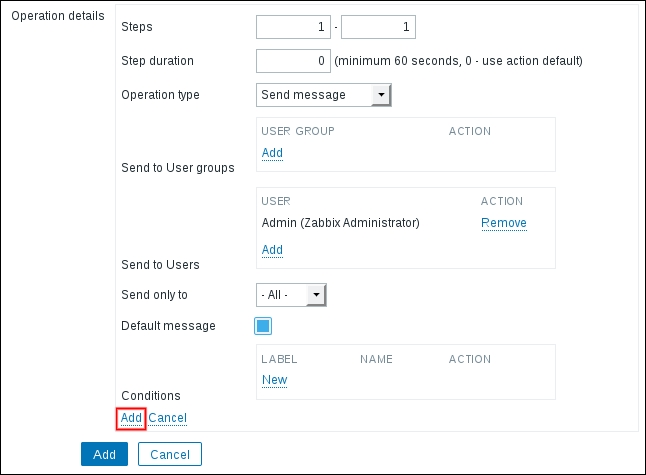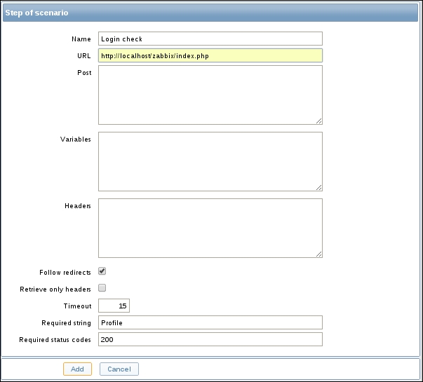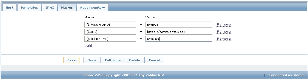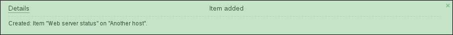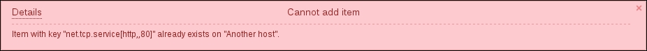 Notice how the opened form proposes to create a new item, but this time, all values are set to those that the original item we cloned had. The Update button is changed to Add as well. Click on the Add button—it should fail. Remember, we talked about the key being unique per host; that's what the error message says as well:
