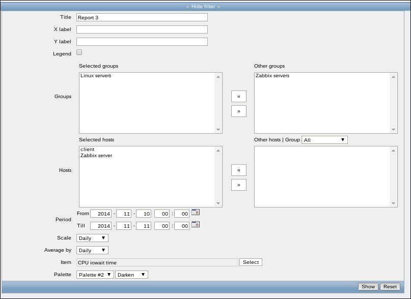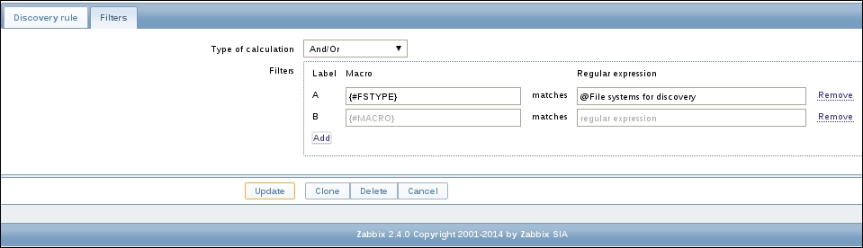 In many filter fields in Zabbix, we can either start typing and get a list of matching entries or click on the Select button to see a list of all available entities. Typing in is a very convenient way when we know at least part of the name. Being able to see the list is helpful when working in an environment we are less familiar with.