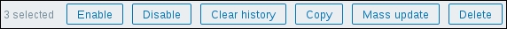 The third button from the left, named Clear history, probably does what we want. Notice the 3 selected text to the left of the activity buttons—it shows the amount of entries selected, so we always know how many elements we are operating on. Click on the Clear history button. You should get a JavaScript popup asking for confirmation to continue. While history cleaning can take a long time with large datasets, in our case, it should be nearly instant, so click on the OK button to continue. This should get rid of all history values for this item, including the huge ones.