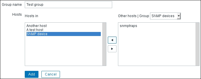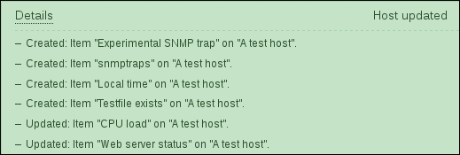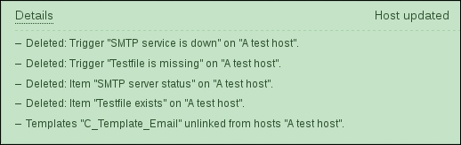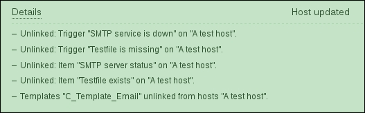 While we're at it, let's update the agent configuration on A test host as well. Modify zabbix_agentd.conf and set Hostname=A test host and restart the agent daemon.