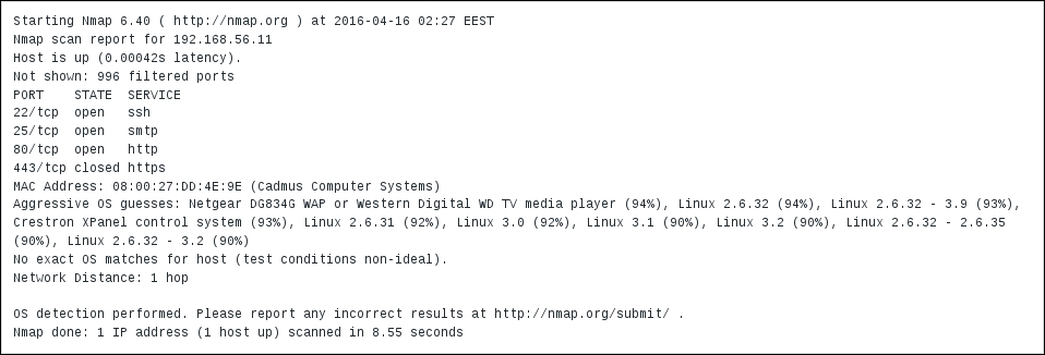 Replace the IP address with the one of your remote host. You should see the following output, and the connection should immediately be closed: