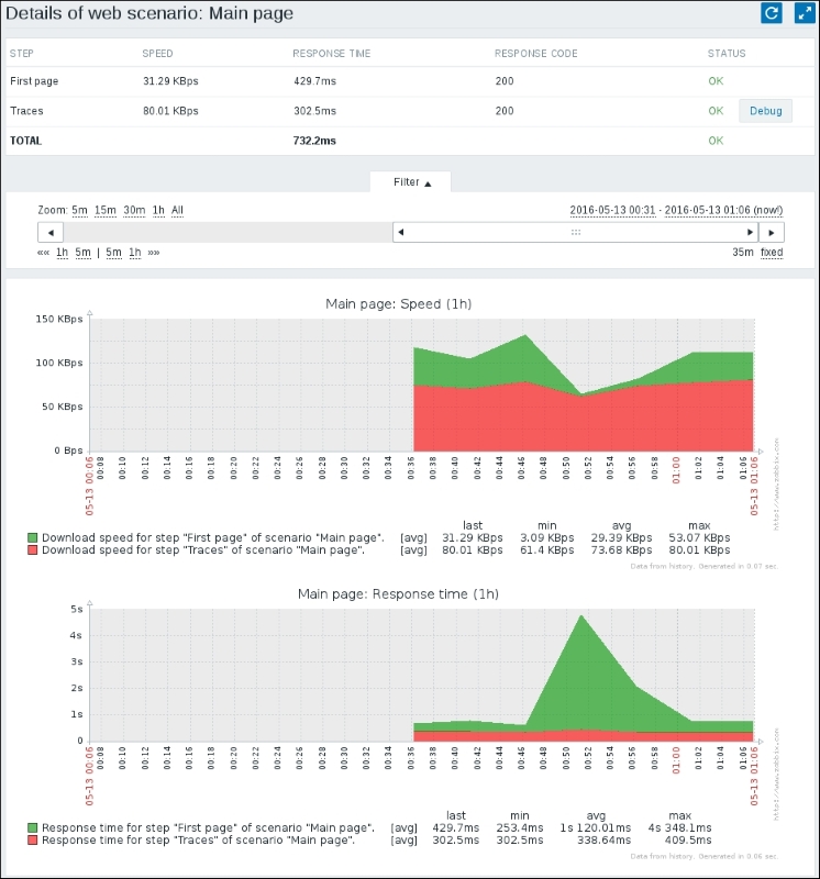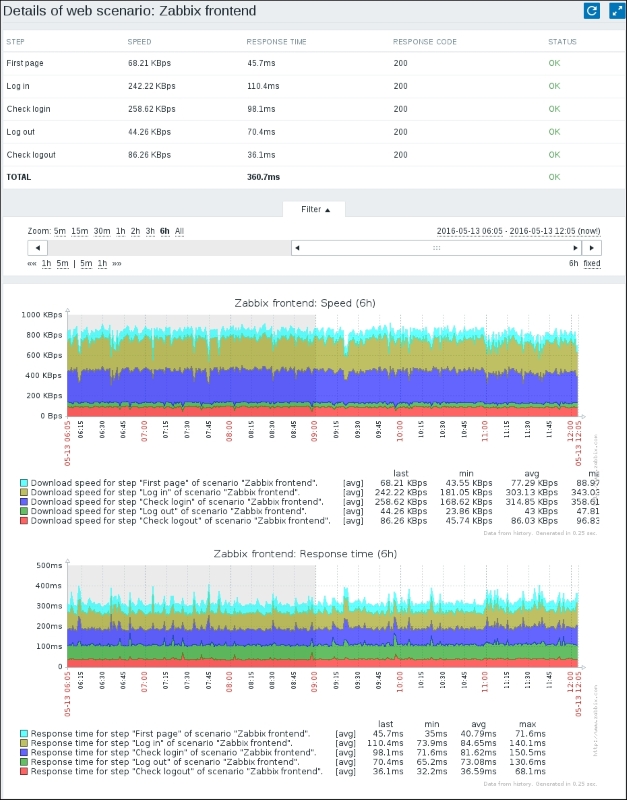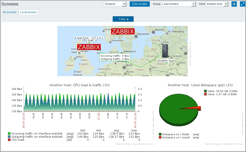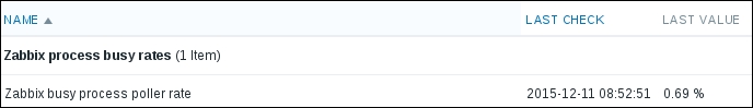 Keep in mind that in the worst case, configuration changes might take up to 3 minutes to propagate to the Zabbix agent: 1 minute to get into the server configuration cache and 2 minutes until the agent refreshes its own item list. On top of this delay, this item is different from the others we created: it needs to gather two values to compute per second, one of which we are interested in; thus, we will also have to wait for whatever the item interval is before the first value appears in the frontend.