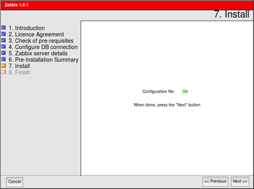 We also have to create a configuration file, so, as root, copy example configuration (usually not needed when installing from distribution packages):