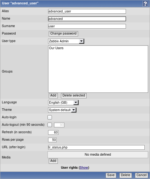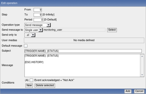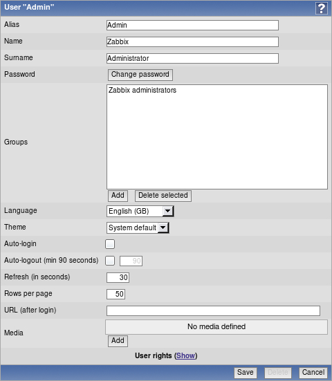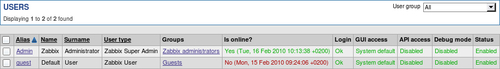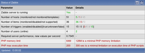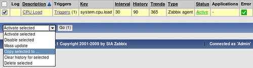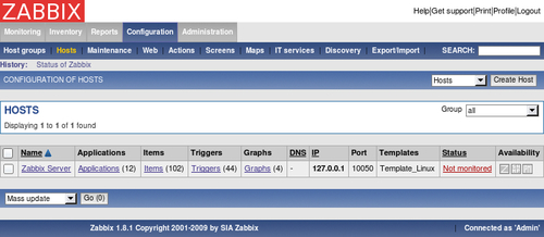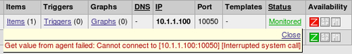 If you see an error message similar to Get value from agent failed: Cannot connect to [10.1.1.100:10050] [Interrupted system call] (most likely, with a different IP address), it means that Zabbix server was unable to connect to agent daemon port. This can happen because of a variety of reasons, the most common being a firewall either a network one in between Zabbix server and the remote host, or a local one on the remote host. Make sure to allow connections from Zabbix server to the monitored machine on port 10050. Then mark the checkbox in the host list next to the remote host, choose Activate selected from the dropdown below the item list, then click Go button and confirm the pop up. While Zabbix will retry connecting to unavailable hosts, this will speedup the reconnection attempt. Alternatively, you can click on the Monitored text in the Status column, which will turn into Not monitored, click on that again. Clicking on Status column values toggles host monitoring.
