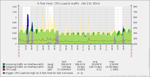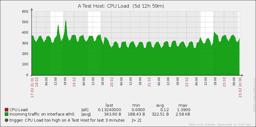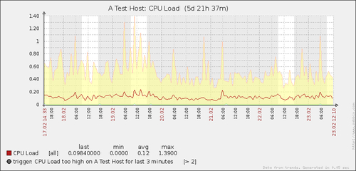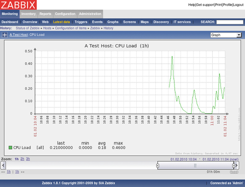 One parameter that we set, update interval, could have been smaller, thus resulting in a better looking graph. But it is important to remember that the smaller the intervals you have on your items, the more data Zabbix has to retrieve, and each second more and more data has to be inserted into the database and more calculations have to be performed when displaying this data. While it would have made no notable difference on our test system, you should try to keep intervals as large as possible.