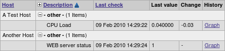 Finally, it should be worth opening Monitoring | Latest data, where we should see two monitored hosts now, each having a single item click on the + icon to expand the newly added item.