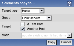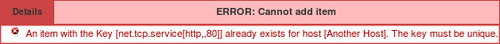 Notice how the opened form proposes to create new item, but this time all values are set to what the original item we cloned had. Click Save but that should fail. Remember, we talked about the key being unique per host, that's what the error message says as well.