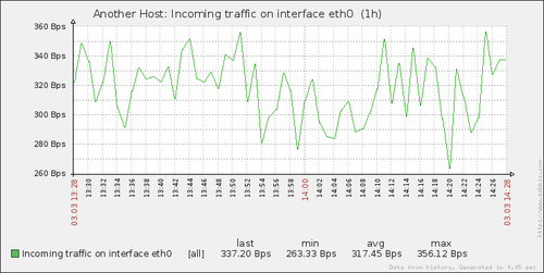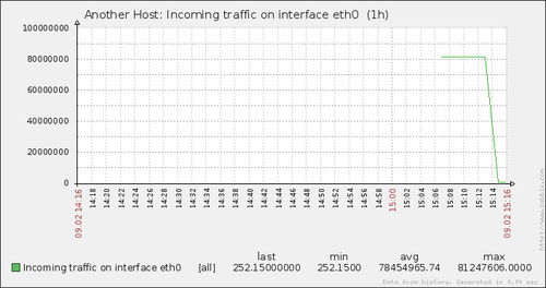 Still, looking at the y-axis in that graph, we see those large values that are hard to grasp easily. It would be so much better if Zabbix knew how to calculate it in bytes or similar units. Right, so navigate to Configuration | Hosts and click Items next to Another Host, then click Incoming traffic on interface eth0 in the Description column. Edit the Units field and enter "B", then click Save.
