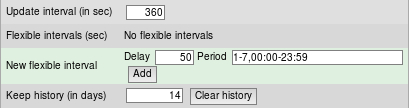 Keep history: Change to 7 from the default (90) that's still a whole week of exact minutely service status records kept